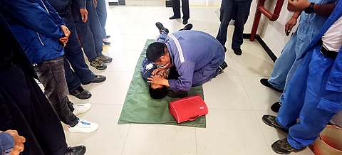 演練模擬大寺鄉(xiāng)發(fā)生6.5級(jí)破壞性地震,供電所辦公樓開始搖晃,指揮長(zhǎng)嚴(yán)世莊大聲呼喊吹哨,各樓層內(nèi)所有人員立即采取正確的避震措施,迅速抱頭尋找最近的墻角、柱角、堅(jiān)固高大的桌下、柜旁或開間小的衛(wèi)生間、內(nèi)承重墻墻角蹲下、抱頭、閉眼,抓牢或握實(shí)以盡量固定身體,使用安全帽等保護(hù)頭部,降低身體重心。隨著指揮長(zhǎng)第二次呼喊緊急撤離,各樓層緊急組織人員安全迅速從安全指定安全通道疏散到指定聚集點(diǎn),過程中員工互相呼喚、提醒避震。撤離后清點(diǎn)發(fā)現(xiàn)1人失蹤,急救組立刻對(duì)失蹤人員進(jìn)行搜救,搜救人員在二樓辦公室發(fā)現(xiàn)失蹤人躺在地上,左手臂被傾倒的辦公桌壓住,造成骨折,同時(shí)發(fā)現(xiàn)兩根0.22KV電線(鋁塑線)達(dá)在傷員身上,并正通有電源,傷員無意識(shí),心跳呼吸停止同時(shí)發(fā)生人員觸電,搜救人員立即斷開有關(guān)電源,用木棒挑開電線,迅速轉(zhuǎn)移傷員至安全地帶后對(duì)其進(jìn)行心肺復(fù)蘇和外傷急救,并撥打120急救電話。經(jīng)全力搶救,傷員已恢復(fù)自主心跳和呼吸,搶救人員對(duì)其進(jìn)行外傷包扎后就地觀察,等待120急救人員到來,同時(shí)有人員報(bào)告一樓安全工器具室發(fā)生火災(zāi),指揮組迅速組織人員對(duì)著火點(diǎn)進(jìn)行滅火器滅火。