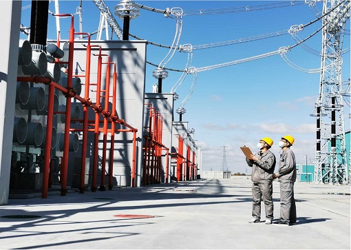 國網(wǎng)冀北電力運(yùn)維人員在特高壓張家口站巡視設(shè)備,全力保障電力可靠供應(yīng)。