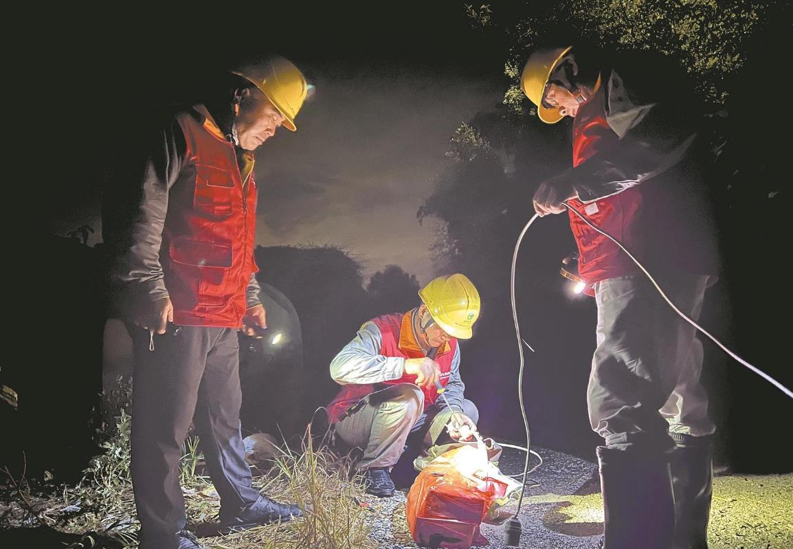 上杭縣供電公司員工加緊搶修,及時(shí)恢復(fù)該村120余戶(hù)村民的正常用電。陳金來(lái) 攝