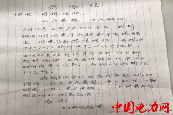 中國電力網(wǎng)訊 我看你們是真正的好人。”3月12日,國網(wǎng)蒙城縣供電公司開發(fā)區(qū)中心供電所城市營業(yè)大廳里,一位“不速之客”握著李雪梅主仼的手連聲道謝;來客是一里白新村居用電戶民曹澤,今天上午特地過來感謝開發(fā)區(qū)中心供電所城市營業(yè)大廳幫助他家檢修緊用10分鐘時間查出問題。這是國網(wǎng)蒙城縣供電公司營業(yè)廳全部恢復(fù)營業(yè)辦理第一件事。