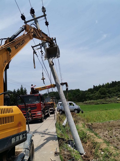 險(xiǎn)情就是命令。敖溪供電所所長(zhǎng)助理曾海林迅速組織搶修人員趕赴事故現(xiàn)場(chǎng)。7時(shí)25分,供電員工抵達(dá)現(xiàn)場(chǎng),立即啟動(dòng)突發(fā)事故搶修預(yù)案,并在現(xiàn)場(chǎng) 拉起了警戒線,避免車(chē)輛、行人靠近。確?,F(xiàn)場(chǎng)安全措施到位后,曾海林協(xié)調(diào)挖掘機(jī)、吊車(chē)等設(shè)備就位,準(zhǔn)備電桿、導(dǎo)線等施工材料,做好搶修前的各項(xiàng)準(zhǔn)備工作。
