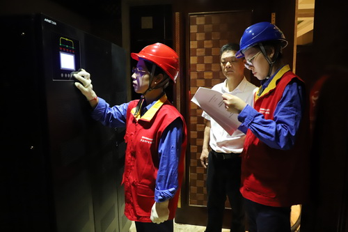 中國電力網(wǎng)訊(通訊員江志明、朱珊珊) 5月15日下午14時,在寧波華僑飯店有限公司華僑溫德姆至尊豪廷大酒店的配電房、會議場館隨處可見保供電人員的身影。在正式會議開始前,國網(wǎng)寧波供電公司海曙供電分公司將對現(xiàn)場所涉及的用電設備以及線路進行一次應急演練。