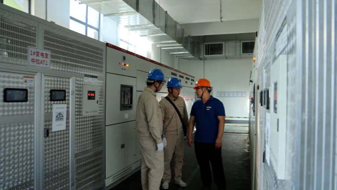 “設(shè)備溫度測量正常,接下來是隱患排查,1號(hào)箱,2號(hào)箱,3號(hào)箱,電路連接無誤……”在中天鋼鐵集團(tuán)(淮安)新材料有限公司生產(chǎn)車間的配電房內(nèi),淮陰供電服務(wù)中心的技術(shù)人員正在對(duì)大型配電設(shè)備進(jìn)行檢查。