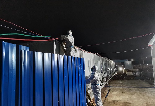 疫情就是命令,防控就是責任。國網(wǎng)東安縣供電公司黨委積極部署制定方案,以楊成為首的4名工作人員進入防控區(qū)域進行作業(yè),著全套防護服、攜帶登桿、搶修各類工具及材料進入管控區(qū)域。隨后,工作人員開始對院內(nèi)的變壓器以及用電線路等設備進行全面檢查,為盡快恢復隔離點供電,從排查電氣、監(jiān)測漏電保護器、更換導線,大家爭分奪秒。“夜間作業(yè)視線不好,要特別注意安全,要戴好口罩,注意自身的防護!”楊成叮囑每一位搶修人員,在應急搶修燈的照明下,工作人員不敢有絲毫的麻痹大意,嚴密監(jiān)護作業(yè)……一道道工序有條不紊地進行著,雖然天氣變冷,但是密不透風的防護服和口罩很快便被汗水打濕,他們在夜幕中來回穿梭,與時間賽跑,與疫情競速,用時6小時,奮戰(zhàn)到晚上23點圓滿完成緊急供電任務。