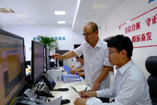 國網(wǎng)霸州供電公司工作人員密切關(guān)注電網(wǎng)運行。 趙亞彬攝