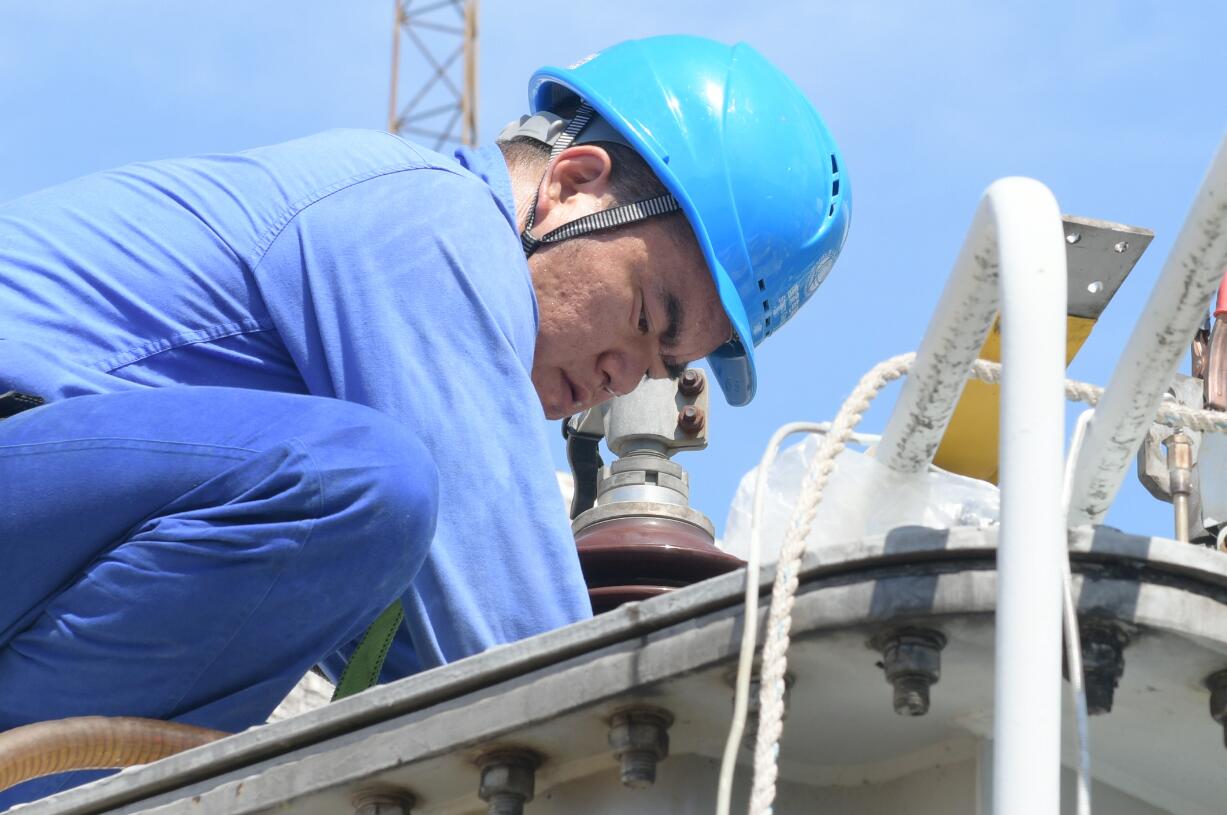 刺眼的烈日給檢修工作帶來不少影響,此時主變上的溫度已近50度,檢修人員們克服高溫穩(wěn)步推進各項工作,不一會兒曬紅的臉頰也掛滿了汗水,衣服也被浸濕。隨著檢修人員將分接開關(guān)裝復、充油,完成主變診斷性試驗,至20點37分,全部工作順利完成。