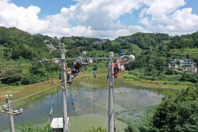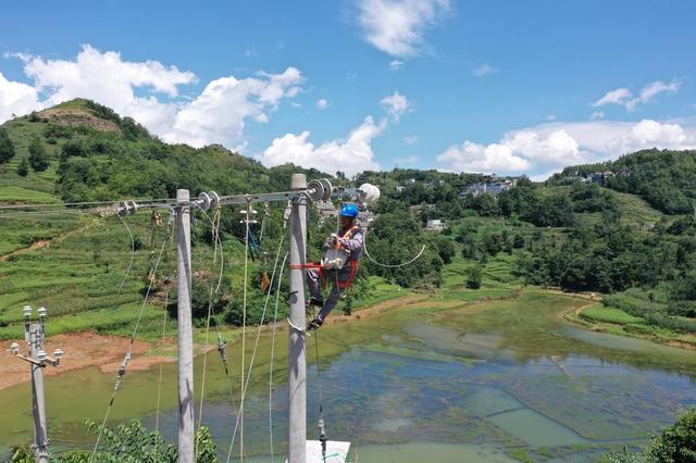 南方電網(wǎng)興仁供電局工作人員對(duì)新田水庫(kù)供電線路10千伏龍麻線白墳支線進(jìn)行遷改搭線。