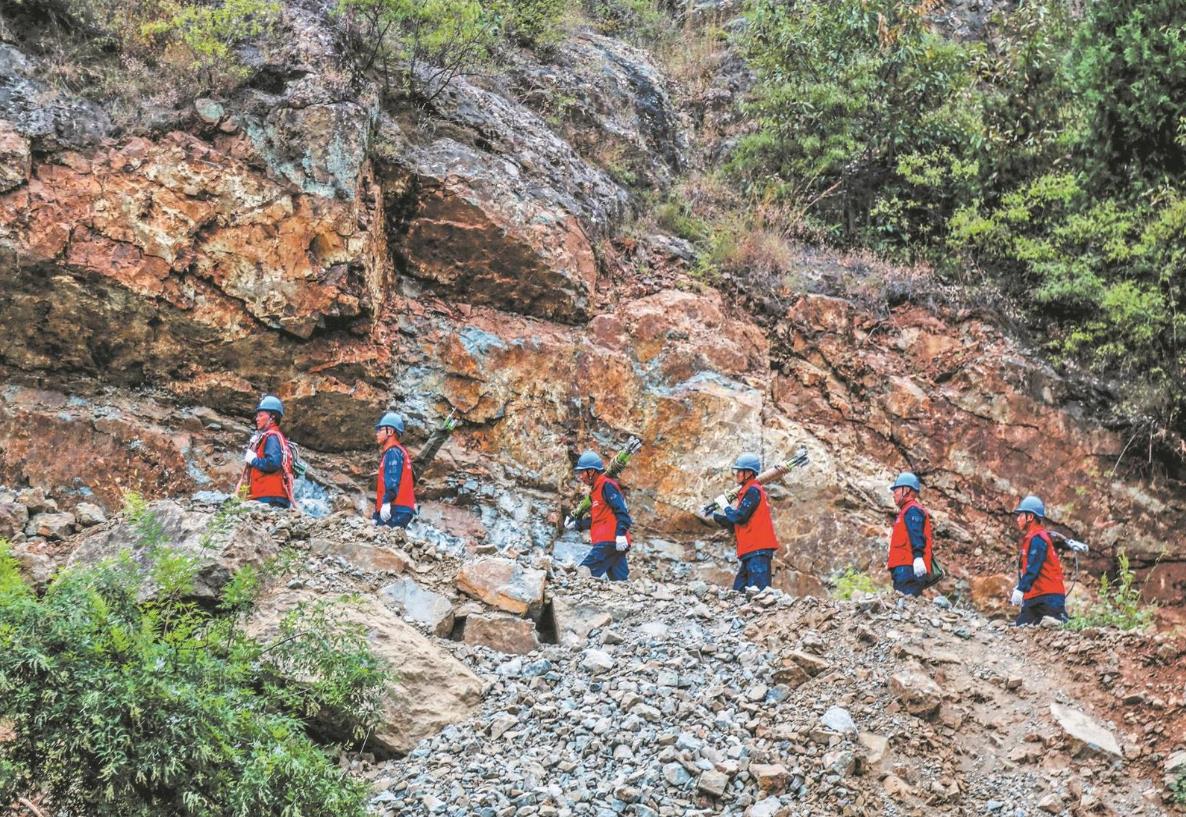 供電員工在三合村檢修用電線路,保障村民安全用電。石亞博 攝