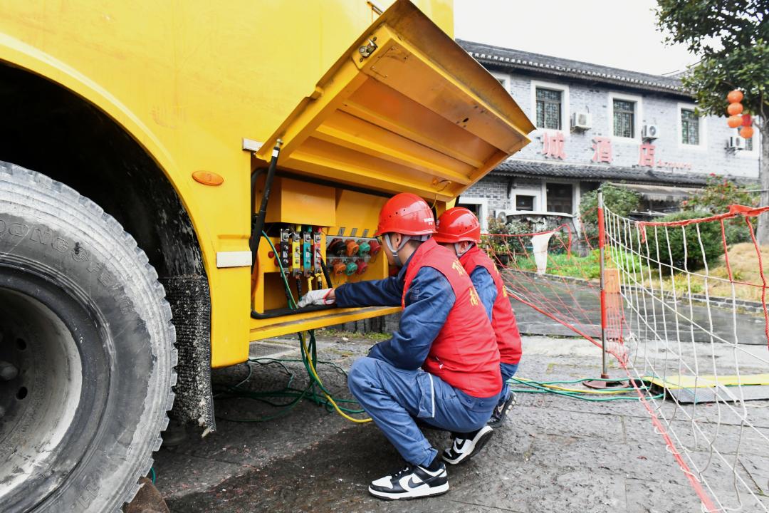 活動籌備期間,錦屏供電局保電工作小組對活動現(xiàn)場及周邊的供電線路和設備開展了全面細致的檢查,對配電柜、變壓器等關鍵電力設施進行了多輪次的特巡,發(fā)現(xiàn)隱患及時清除,確保設備“健康上崗”。除此之外,錦屏供電局還調(diào)配了一臺500千瓦應急發(fā)電車進駐演出會場,為活動現(xiàn)場供電加上了一道“雙保險”。