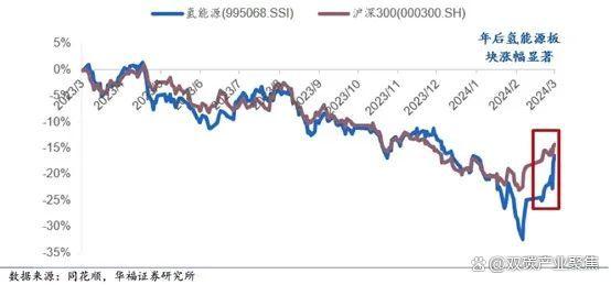 圖說(shuō):近一年氫能行業(yè)相對(duì)大盤(pán)走勢(shì)