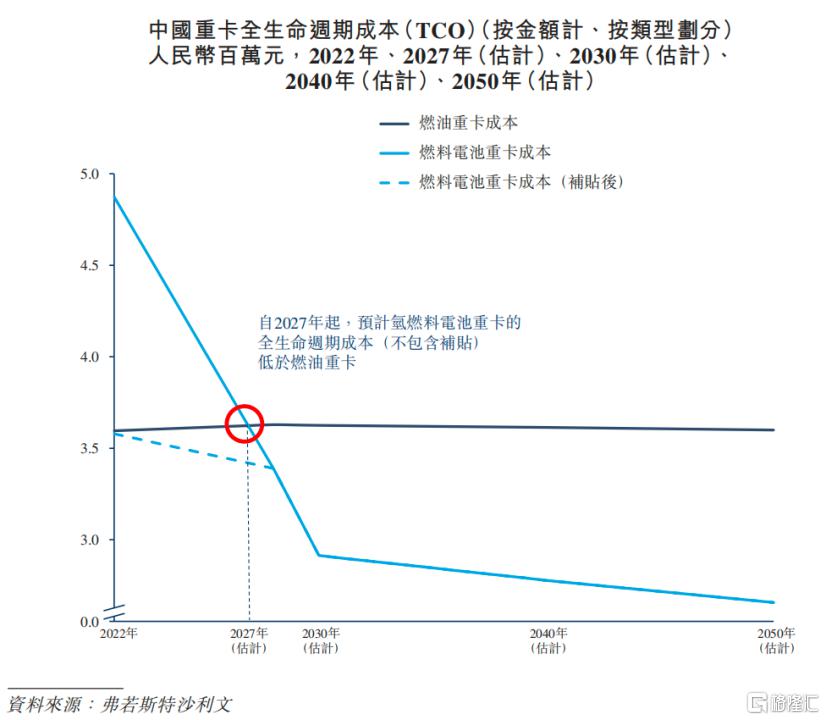 重塑能源在招股書中對氫能重卡 TCO 做出預測,而隨著山東氫能重卡免除高速通行費帶起了地方政策風向,其他省份跟進,成本交叉點還可能提前,明顯早于 2027 年。可以預見,重塑能源所面對的扭虧壓力會逐漸縮小,基于自身優(yōu)勢和市場地位,也會收獲更多的成長確定性。