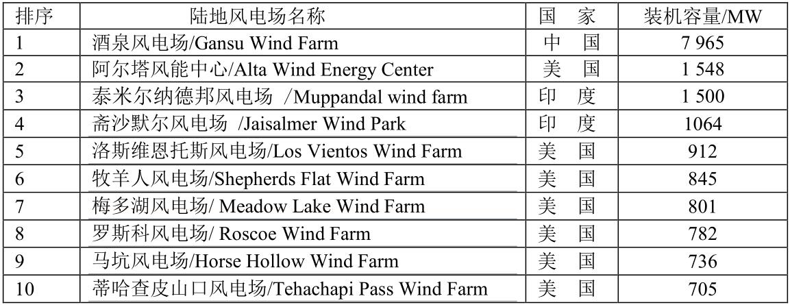 全球十大陸地風(fēng)電場