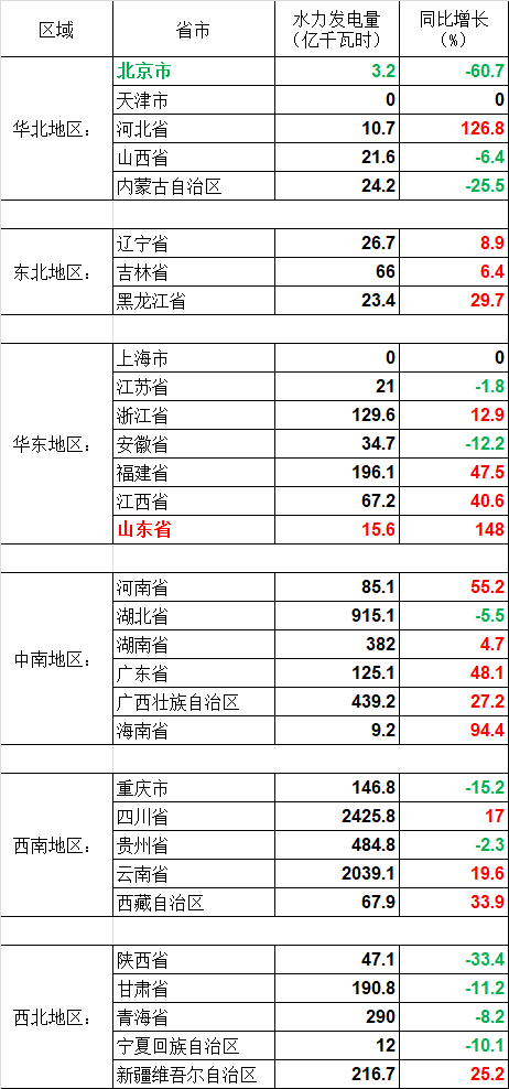 此外,西北地區(qū)為我國水力發(fā)電量下降省份最多的地區(qū),5省區(qū)中有4個省區(qū)同比下降。