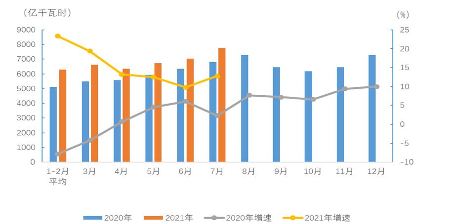 2021年1-7月電力消費(fèi)情況