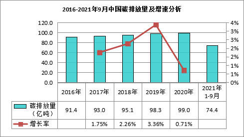 數(shù)據(jù)顯示,2020年我國(guó)碳排放總量約達(dá)99.0億噸,預(yù)計(jì)2021年我國(guó)碳排放總量將達(dá)101.09億噸。