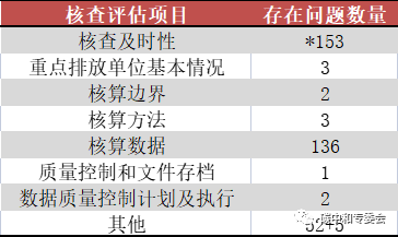 在核查及時性、重點排放單位基本情況、核算邊界、核算方法、核算數(shù)據(jù)、質(zhì)量控制和文件存檔、數(shù)據(jù)質(zhì)量控制計劃及執(zhí)行和其他8個核查評估項目中,核算數(shù)據(jù)方面出問題的最多,達(dá)136家次。核查及時性方面,有153家存在核查不及時的情況,但不影響合格率判定。在“其他”的核查評估中,有52家存在問題(如“紙質(zhì)版排放報告中供電、供熱碳排放強度單位錯誤”、“核查成果提交不夠及時”)但不影響合格率判定,5家存在問題并影響合格率判定。