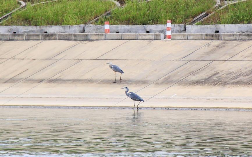 在南水北調中線渠道內灰鸛優(yōu)雅行走