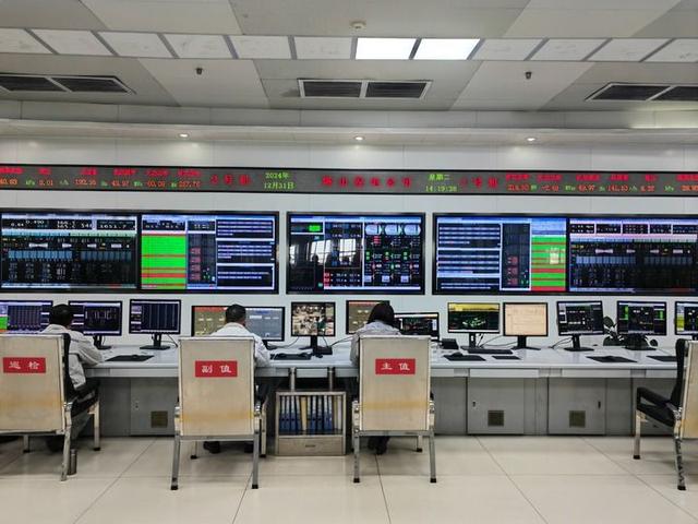 工作人員在晉控電力塔山發(fā)電山西有限公司調(diào)度中心忙碌(2024年12月31日攝)。新華社記者 樊欣陽(yáng) 攝