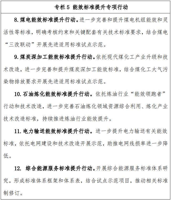 ——修訂一批常規(guī)能源生產(chǎn)轉化和輸送利用能效相關標準,提升標準要求和水平,助推和規(guī)范資源綜合利用、能效提升。