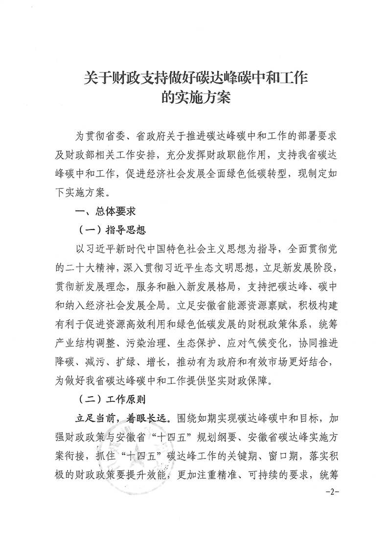 近日,安徽省財(cái)政廳印發(fā)《關(guān)于財(cái)政支持做好碳達(dá)峰碳中和工作的實(shí)施方案》的通知。