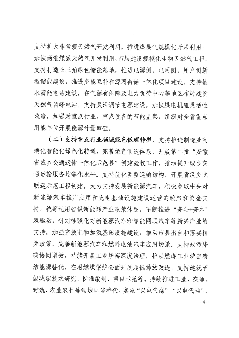 通知指出,支持企業(yè)開展節(jié)能減煤技術(shù)改造,重點(diǎn)削減非電力用煤,提高電力用煤比例。大力支持可再生能源高比例應(yīng)用,支持光伏發(fā)電和風(fēng)電資源開發(fā),推進(jìn)生物質(zhì)能發(fā)電、清潔供暖、熱電聯(lián)產(chǎn)、生物質(zhì)天然氣等多元化發(fā)展。支持?jǐn)U大非常規(guī)天然氣開發(fā)利用,推進(jìn)煤層氣規(guī)?;_采利用,加快兩淮煤系天然氣開發(fā)利用,布局建設(shè)規(guī)模化生物天然氣工程。支持打造長(zhǎng)三角綠色儲(chǔ)能基地,推進(jìn)電源側(cè)、電網(wǎng)側(cè)、用戶側(cè)新型儲(chǔ)能建設(shè),推進(jìn)多能互補(bǔ)和源網(wǎng)荷儲(chǔ)一體化項(xiàng)目建設(shè)。支持抽水蓄能電站建設(shè),在氣源有保障及電力負(fù)荷中心等地區(qū)布局建設(shè)天然氣調(diào)峰電站。支持靈活調(diào)節(jié)電源建設(shè),加快煤電機(jī)組靈活性改造。加強(qiáng)對(duì)重點(diǎn)行業(yè)、重點(diǎn)設(shè)備的節(jié)能監(jiān)察,組織對(duì)全省重點(diǎn)用能單位開展能源計(jì)量審查。
