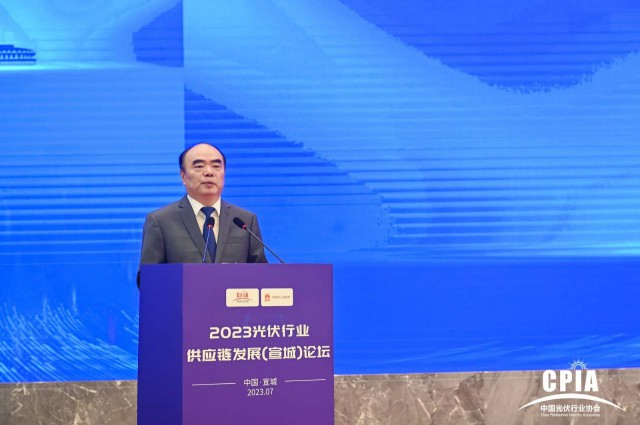 2023年7月19日,由中國光伏行業(yè)協(xié)會(huì)、宣城市人民政府主辦的“2023光伏行業(yè)供應(yīng)鏈發(fā)展(宣城)論壇”在安徽宣城順利舉行。中國光伏行業(yè)協(xié)會(huì)理事長(zhǎng)曹仁賢出席論壇并致辭。