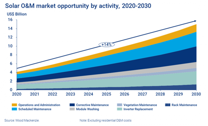 光伏運(yùn)維市場(chǎng)規(guī)模預(yù)測(cè),按服務(wù)內(nèi)容劃分(2020-2030年)