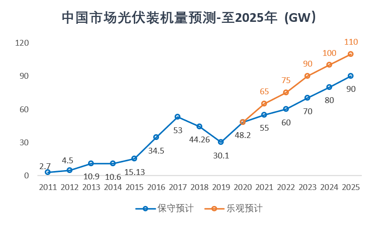 2020年,中國(guó)地區(qū)光伏裝機(jī)量達(dá)到 48.2 GW,遠(yuǎn)超過(guò)之前的預(yù)期
