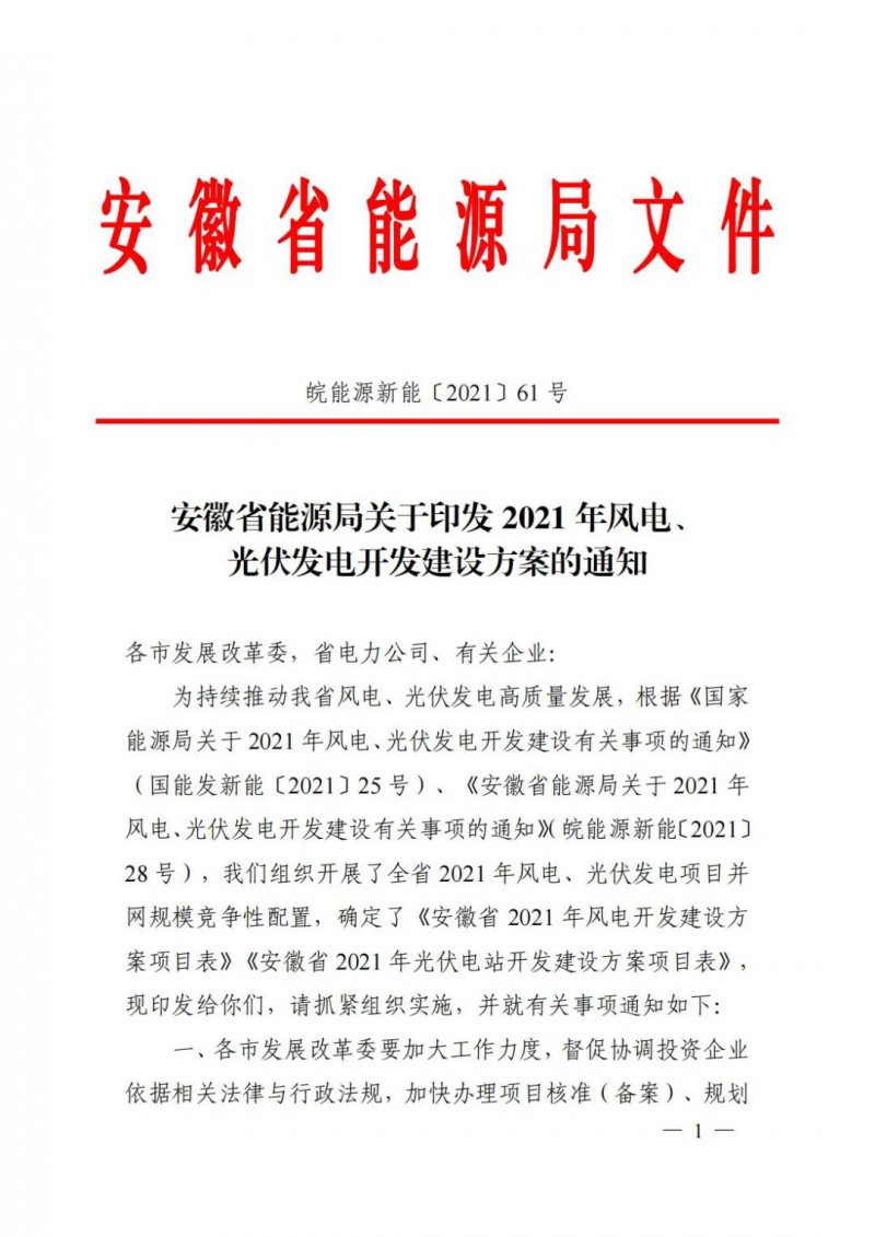 安徽能源局發(fā)布6GW風(fēng)、光項(xiàng)目?jī)?yōu)選名單