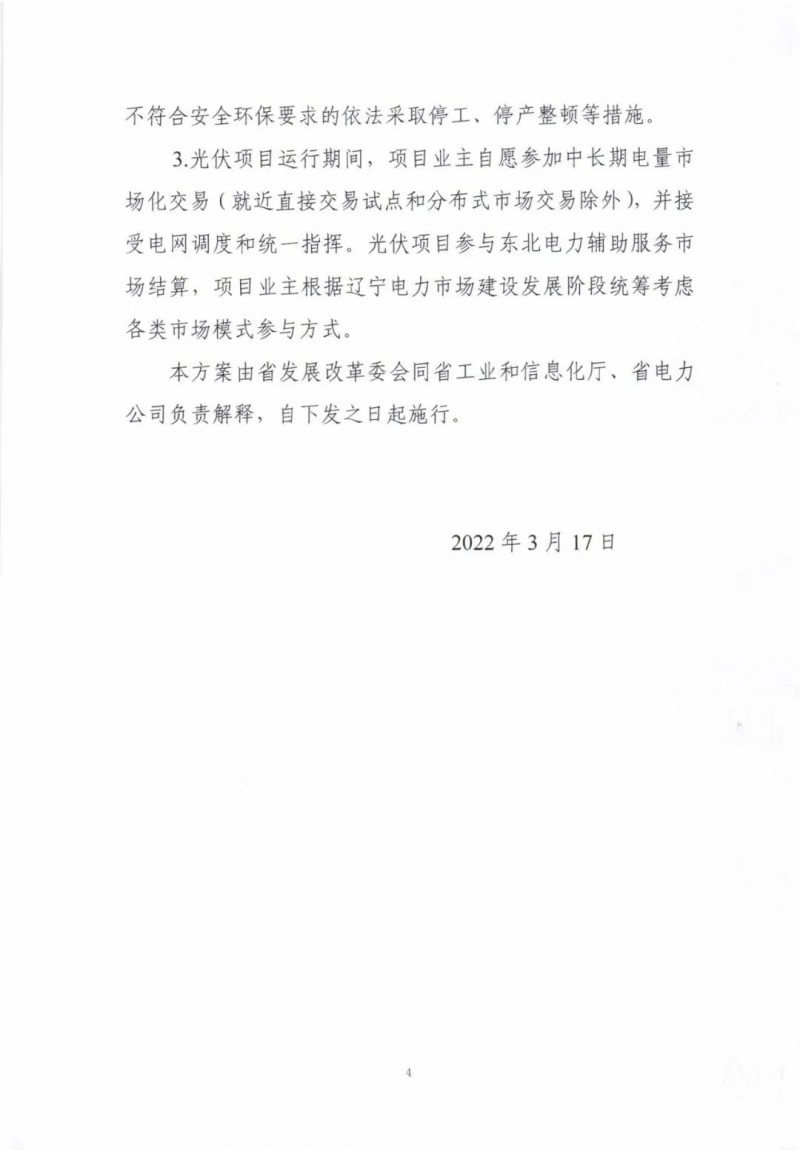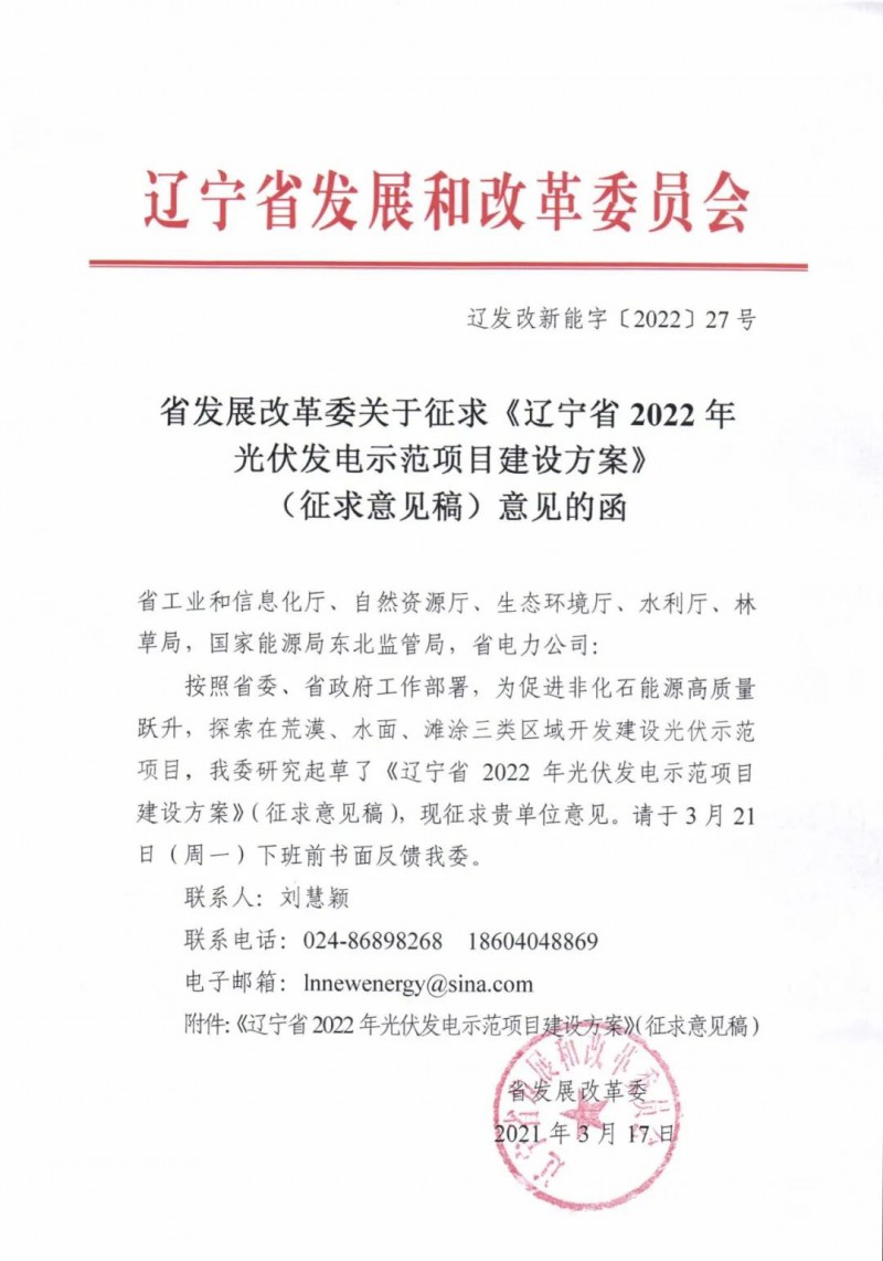 近日,遼寧省發(fā)改委下發(fā)《遼寧省2022年光伏發(fā)電示范項目建設(shè)方案》(征求意見稿)。文件表示,為節(jié)約高效利用我省土地資源,深入挖掘土地價值,減少占用耕地,探索光伏發(fā)電項目與產(chǎn)業(yè)融合發(fā)展新模式,推進(jìn)在荒漠、水面、灘涂三類區(qū)域開發(fā)建設(shè)光伏示范項目。結(jié)合各地資源稟賦和發(fā)展?jié)摿?,本次安排光伏示范項目建設(shè)總規(guī)模80萬千瓦,其中,阜新治沙光伏項目50萬千瓦、盤錦水面光伏項目20萬千瓦、大連灘涂光伏項目10萬千瓦。