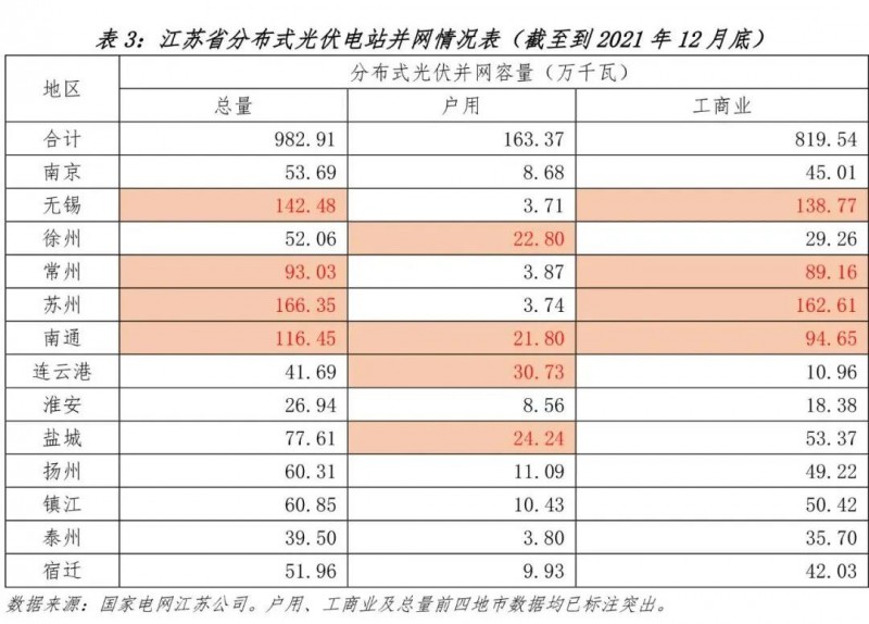 2021 年 9 月,國家能源局官網公布了全國整縣(市、區(qū))屋頂分布式光伏開發(fā)試點名單,在 676 個試點縣(市、區(qū))中江蘇共有 59 個,數量居全國第三。