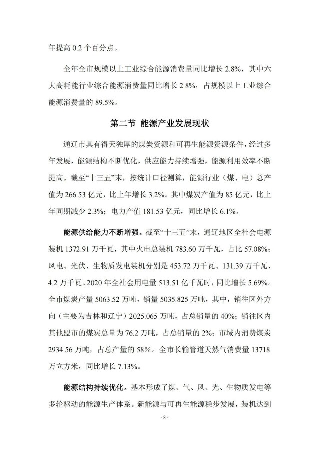 近日,通遼市能源局印發(fā)《通遼市百億級(jí)現(xiàn)代能源示范產(chǎn)業(yè)集群發(fā)展規(guī)劃》,規(guī)劃到2025年,全市煤炭產(chǎn)能新增1535萬(wàn)噸,新增電源裝機(jī)1940萬(wàn)千瓦,其中火電520萬(wàn)千瓦,風(fēng)電900萬(wàn)千瓦,光伏發(fā)電500萬(wàn)千瓦,生物質(zhì)發(fā)電20萬(wàn)千瓦。