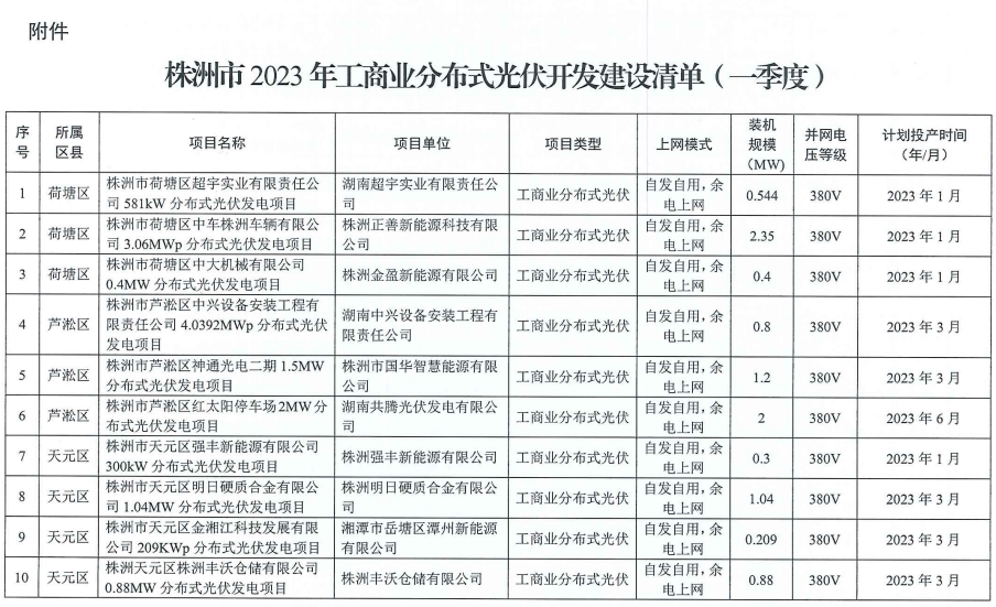 根據(jù)清單,株洲市2023年工商業(yè)分布式光伏項(xiàng)目共計(jì)52個(gè),規(guī)模合計(jì)153.341MW,計(jì)劃投產(chǎn)時(shí)間均在2023年內(nèi)。