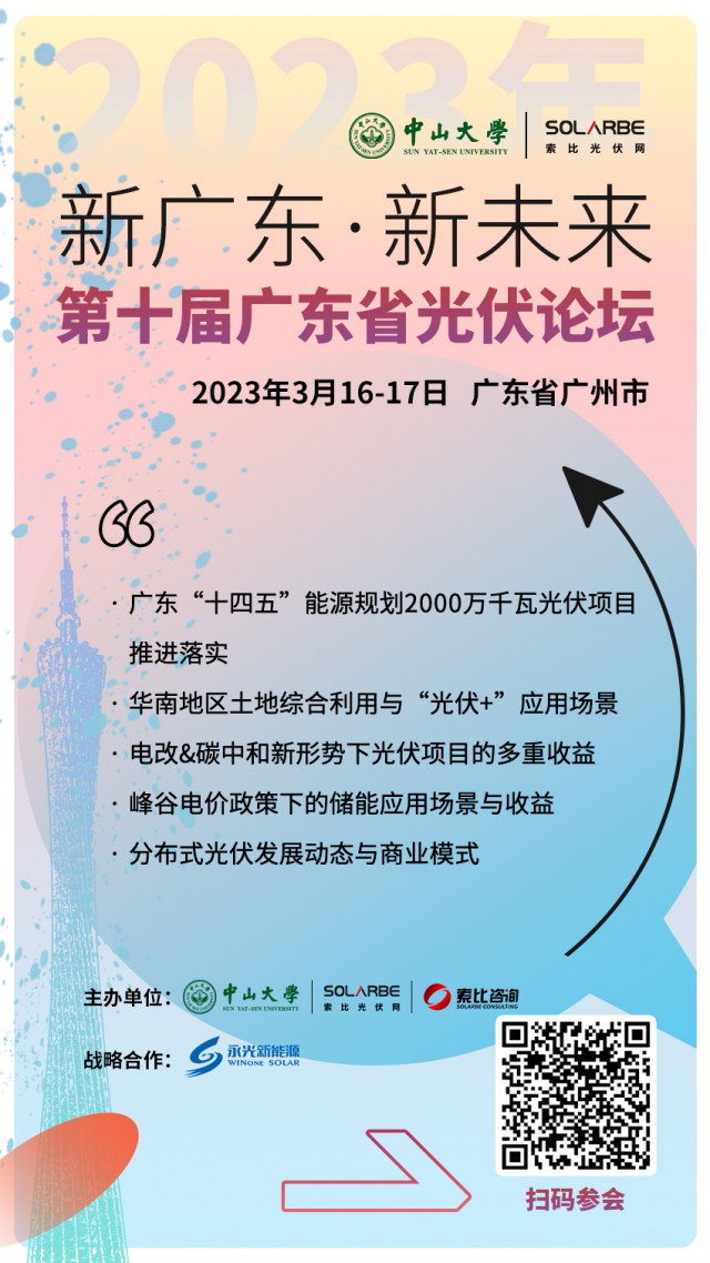 新廣東 新未來!第十屆廣東省光伏論壇3月16-17日聚首廣州,為時(shí)代籌謀!分布式光伏重心南遷之際與各位同仁一起搶占先機(jī)、贏得主動(dòng)!趕緊點(diǎn)擊了解詳情報(bào)名吧!