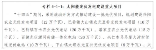 3月31日,貴州興仁市“十四五”能源發(fā)展規(guī)劃(2021-2025年)公示,根據(jù)規(guī)劃內(nèi)容,光伏方面:因地制宜嚴控光伏項目布局,創(chuàng)新“光伏+”綜合利用模式,支持發(fā)展農(nóng)光互補、林光互補、漁光互補等項目,促進光伏與其他產(chǎn)業(yè)跨界融合,支持光伏開展石漠化治理、采煤沉陷區(qū)治理,合理利用各種邊坡、邊溝、灰場、填埋場等,充分挖掘土地利用空間,推動全市太陽能光伏發(fā)電規(guī)?;l(fā)展。鼓勵發(fā)展分布式光伏發(fā)電,支持在城鎮(zhèn)住宅小區(qū)和農(nóng)村房屋、產(chǎn)業(yè)園區(qū)、企業(yè)廠房、物流倉儲基地、公共建筑屋頂、商業(yè)和旅游綜合體等領域發(fā)展分布式光伏,積極推動發(fā)展光伏建筑一體化建設。結合實施鄉(xiāng)村振興戰(zhàn)略,鞏固脫貧攻堅成果,大力支持在鄉(xiāng)村發(fā)展分布式家用光伏。到2025年,全市新增太陽能光伏發(fā)電裝機容量70萬千瓦以上。