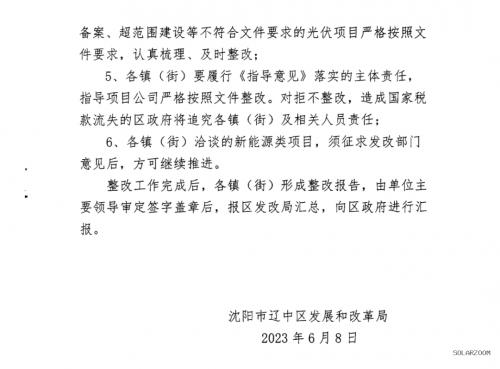 4、各鎮(zhèn)(街)對(duì)企業(yè)“化整為零”以自然人身份申請(qǐng)備案、超范圍建設(shè)等不符合文件要求的光伏項(xiàng)目嚴(yán)格按照文件要求,認(rèn)真梳理、及時(shí)整改;