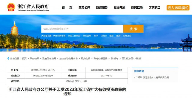 7月17日,浙江省人民政府辦公廳關于印發(fā)2023年浙江省擴大有效投資政策的通知,通知指出,支持可再生能源高質(zhì)量發(fā)展。繼續(xù)對投產(chǎn)的光伏、風電項目實行全額保障性并網(wǎng)。