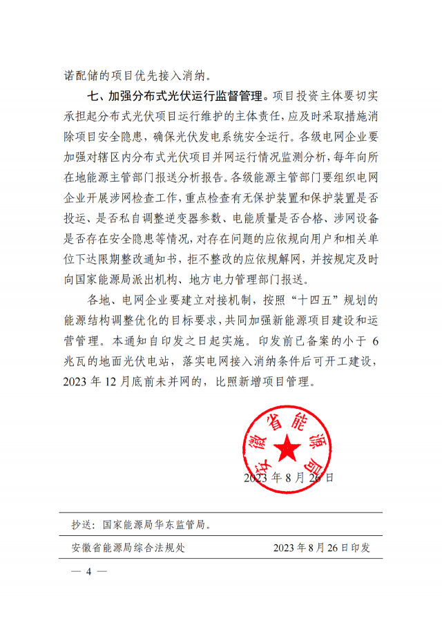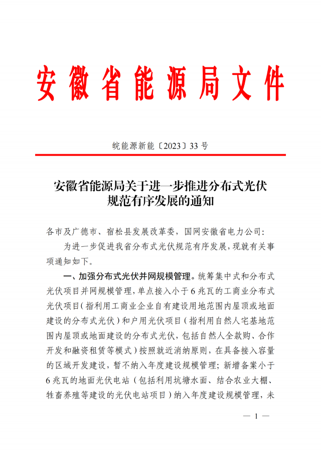 8月26日,安徽省能源局下發(fā)《關(guān)于進(jìn)一步推進(jìn)分布式光伏規(guī)范有序發(fā)展的通知》,就分布式光伏管理給出新的要求。