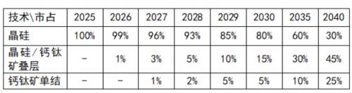 樂觀預計,2025年前晶硅/鈣鈦礦疊層技術將有量產(chǎn)及示范應用,組件效率將超過晶硅;到2027年,晶硅/鈣鈦礦疊層將有規(guī)模化應用,組件效率將超過30%;到2030年,晶硅/鈣鈦礦疊層技術將大規(guī)模部署。