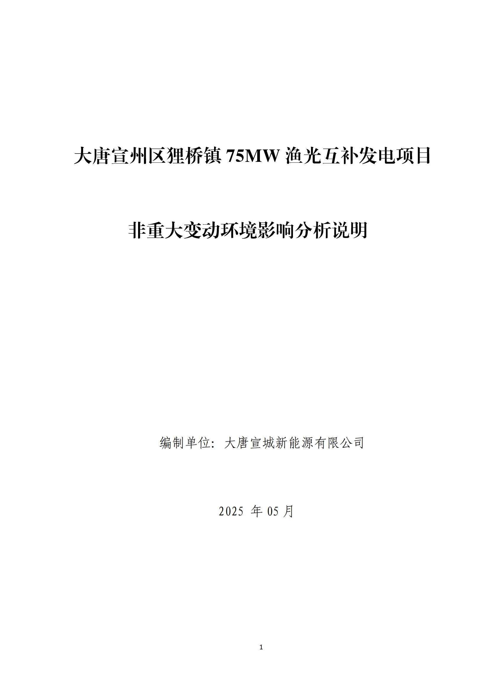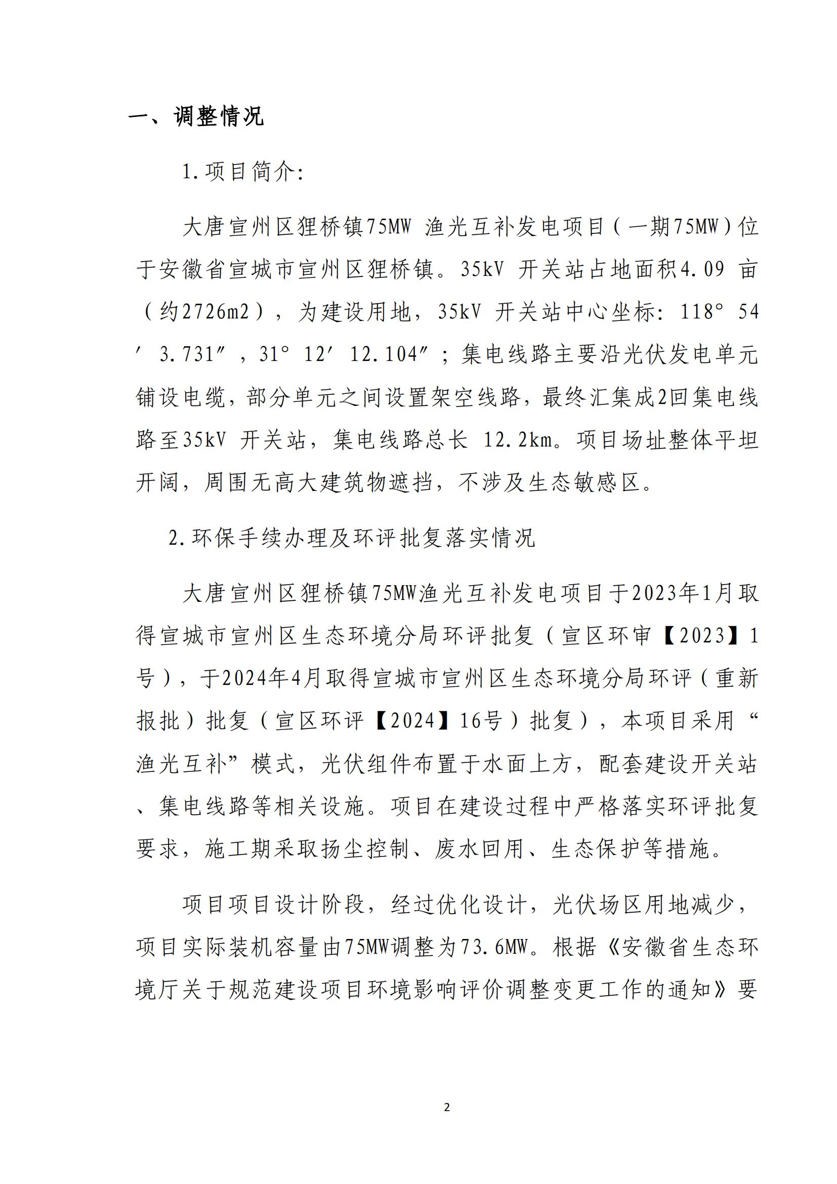 大唐宣州區(qū)貍橋鎮(zhèn)75MW漁光互補(bǔ)發(fā)電項(xiàng)目非重大變動(dòng)環(huán)境影響分析說明