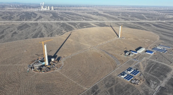 在距離格爾木700多公里的甘肅省瓜州縣,三峽集團正在建設(shè)全球首個“雙塔一機”風(fēng)光熱儲一體化項目——三峽能源瓜州70萬千瓦“光熱儲能+”項目,其中的子項目——10萬千瓦光熱項目(以下簡稱“瓜州項目”)是全球首個“雙塔一機”光熱電站。