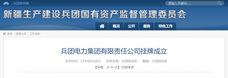 2月26日,從兵團(tuán)國資委獲悉,新疆生產(chǎn)建設(shè)兵團(tuán)電力集團(tuán)有限責(zé)任公司在烏魯木齊舉行揭牌儀式,宣布正式成立。兵團(tuán)電力集團(tuán)有限責(zé)任公司是兵團(tuán)國資國企改革中兵團(tuán)本級成立的第一個(gè)產(chǎn)業(yè)集團(tuán)公司,企業(yè)注冊資本金5億元,是新疆電力市場的重要主體和能源產(chǎn)業(yè)的新興力量。