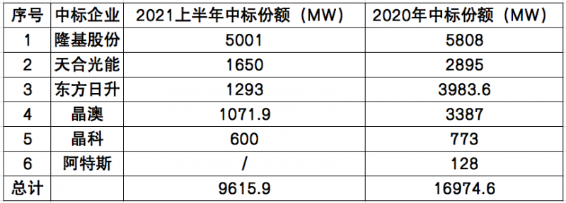 自年初中核集團(tuán)開(kāi)啟2021年首次大規(guī)模組件招標(biāo)以來(lái),截止到2021年6月底,國(guó)內(nèi)以大唐、華電、中核為代表的電力央企已經(jīng)陸續(xù)完成逾29GW的光伏組件招標(biāo)與定標(biāo)工作。