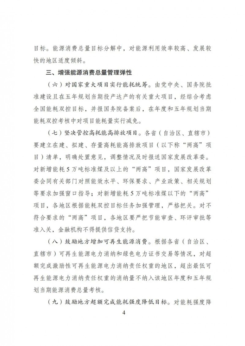 對新增能耗5萬噸標(biāo)準(zhǔn)煤及以上的“兩高”項目,國家發(fā)展改革委會同有關(guān)部門對照能效水平、環(huán)保要求、產(chǎn)業(yè)政策、相關(guān)規(guī)劃等要求加強窗口指導(dǎo);對新增能耗5萬噸標(biāo)準(zhǔn)煤以下的“兩高”項目,各地區(qū)根據(jù)能耗雙控目標(biāo)任務(wù)加強管理,嚴格把關(guān)。對不符合要求的“兩高”項目,各地區(qū)要嚴把節(jié)能審查、環(huán)評審批等準(zhǔn)入關(guān),金融機構(gòu)不得提供信貸支持。