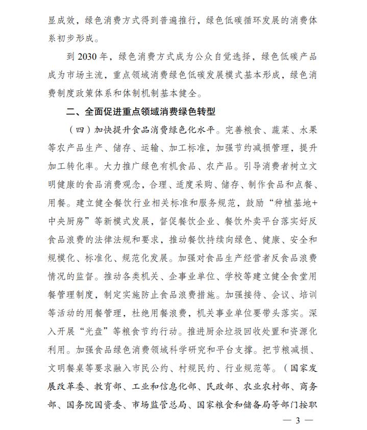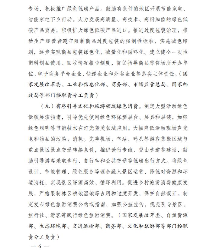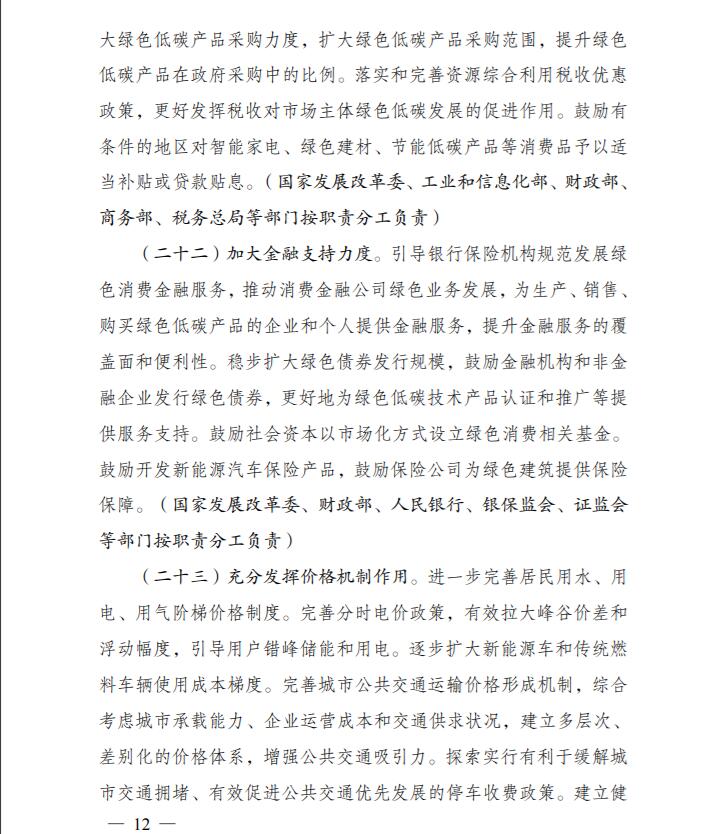 為深入貫徹落實《中共中央、國務院關(guān)于完整準確全面貫徹新發(fā)展理念做好碳達峰碳中和工作的意見》和《2030年前碳達峰行動方案》有關(guān)要求,根據(jù)碳達峰碳中和工作領(lǐng)導小組部署安排,國家發(fā)展改革委、工業(yè)和信息化部、住房和城鄉(xiāng)建設(shè)部、商務部、市場監(jiān)管總局、國管局、中直管理局會同有關(guān)部門研究制定了《促進綠色消費實施方案》?,F(xiàn)印發(fā)給你們,請結(jié)合實際,認真抓好貫徹落實。