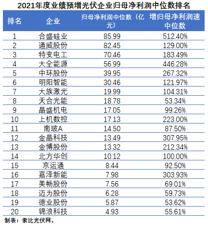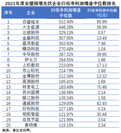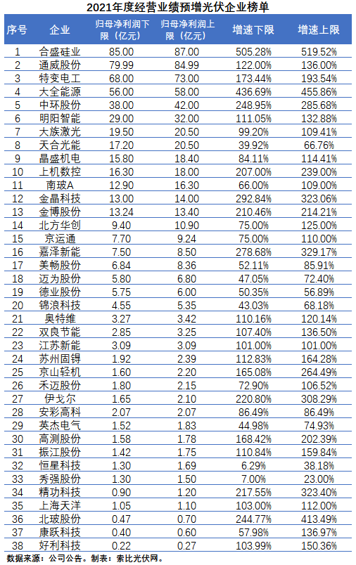 除了這38家企業(yè)以外,其實還有相當(dāng)多的光伏企業(yè)在2021年經(jīng)營業(yè)績亦呈增長態(tài)勢,只是它們沒有達(dá)到業(yè)績預(yù)告的披露標(biāo)準(zhǔn)而已。