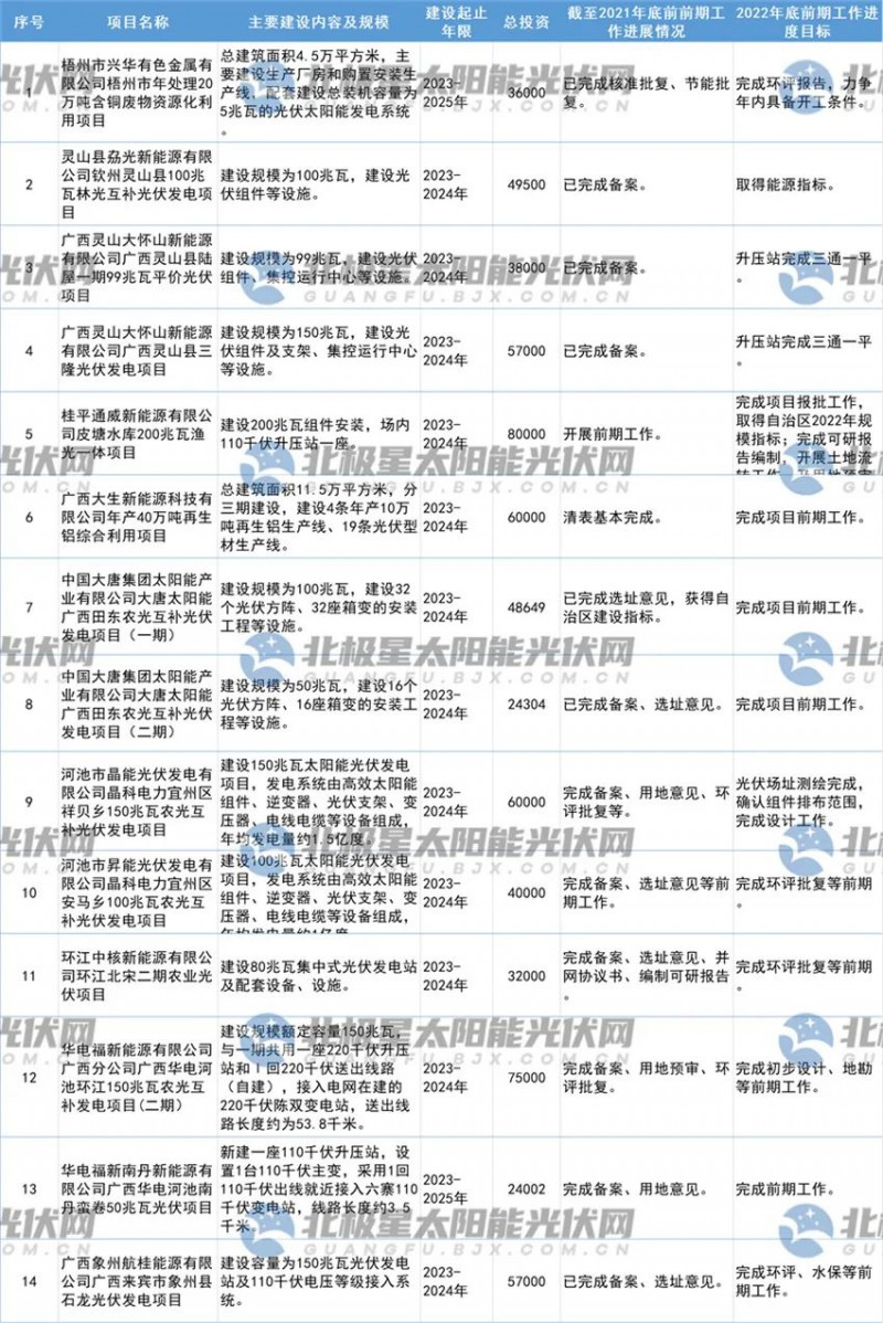 原標(biāo)題:廣西2022年第一批光伏重大項目名單