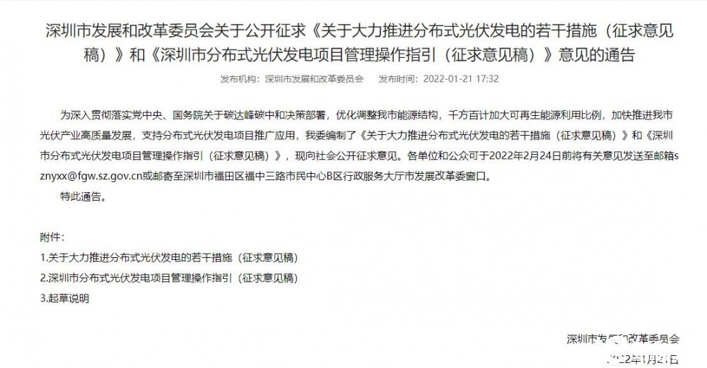 近日,深圳市發(fā)改委發(fā)布《關(guān)于大力推進(jìn)分布式光伏發(fā)電的若干措施(征求意見(jiàn)稿)》(以下簡(jiǎn)稱(chēng)《若干措施》)和《深圳市分布式光伏發(fā)電項(xiàng)目管理操作指引(征求意見(jiàn)稿)》(以下簡(jiǎn)稱(chēng)《操作指引》)。從中獲悉,深圳將建立光伏產(chǎn)業(yè)骨干企業(yè)培育機(jī)制,努力形成一批本地光伏頭部企業(yè)。