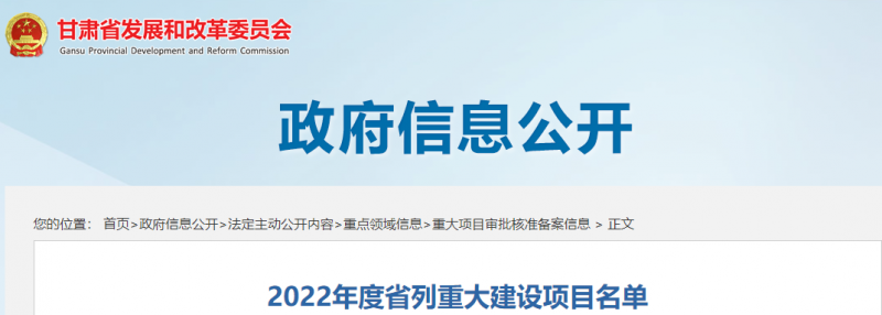 近日,甘肅省發(fā)改委公布了甘肅省2022年度省列重大建設(shè)項(xiàng)目名單,共234個(gè)項(xiàng)目,其中計(jì)劃新開工項(xiàng)目80個(gè),續(xù)建項(xiàng)目138個(gè),預(yù)備項(xiàng)目16個(gè)。