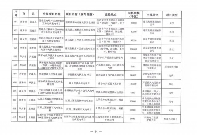 本次江西調(diào)整的納規(guī)風(fēng)光項(xiàng)目總規(guī)模為41.816GW,光伏規(guī)模33.06GW,風(fēng)電規(guī)模為8.754GW,總計(jì)687個(gè)項(xiàng)目。其中,光伏又分為集中式、分布式和水面光伏,規(guī)模分別為23.885GW、0.955GW、8.22GW。